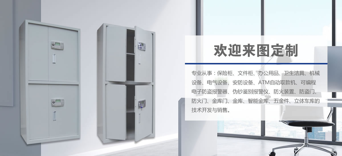 ? 專業(yè)從事:保險柜、文件柜、辦公用品、衛(wèi)生潔具、機械設(shè)備、電氣設(shè)備、安防設(shè)備、ATM自動取款機、可編程電子防盜報警器、偽鈔鑒別報警儀、防火裝置、防盜門、防火門、金庫門、金庫、智能金庫、五金件、立體車庫的技術(shù)開發(fā)與銷售